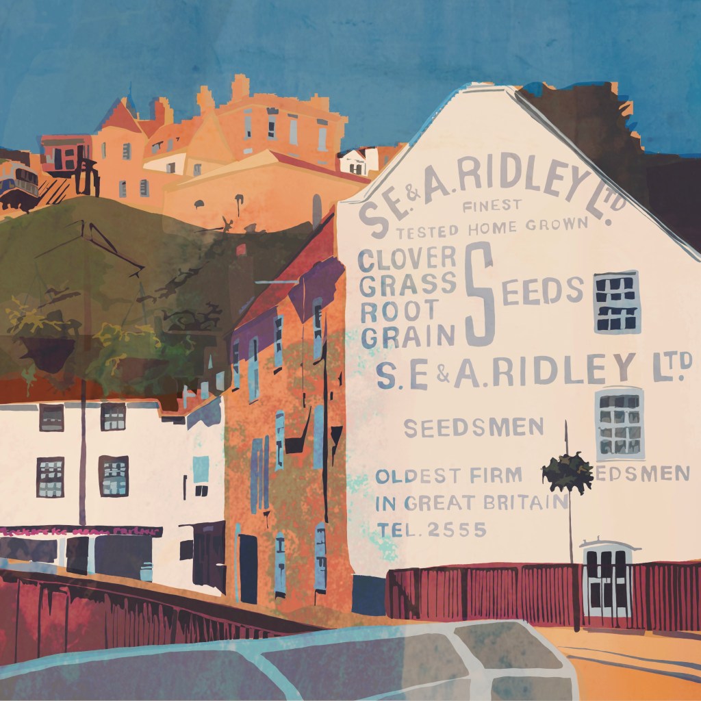 My illustrations reimagine familiar buildings and moments, using bold colour palettes and transparent overlays to evoke collective memory while reflecting the town’s evolving landscape. The work feels both contemporary and nostalgic, offering a fresh perspective on places people think they know.
