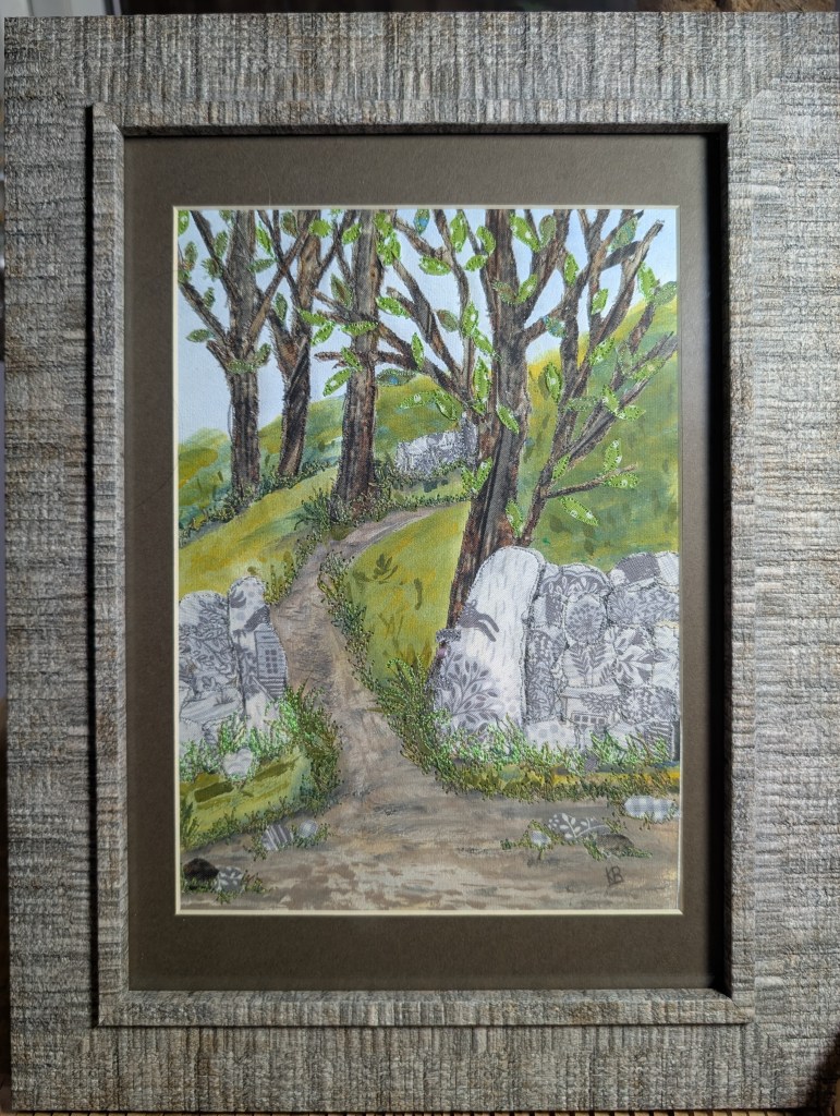 I’m a textile mixed media artist, working with paint, fabrics, embellishments and free motion embroidery. I get my inspiration from walking in the countryside and seaside. I love to collect grasses and seed heads, shells and interesting items I can use in my art. My work is all original one off pieces which I have sold all over the world.