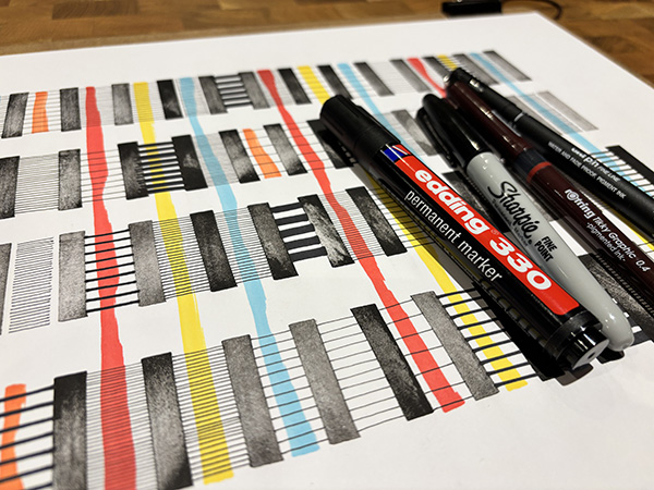 Contemporary abstract drawing, mark making, printmaking, lettering, words and graphic art. At Four Letter Studio, Carl Jones creates abstract art using experimental printmaking, letterpress, linocut, fineliner pens, sharpies and marker pens. Each piece is a one-off original – not a print. Inspired by books, libraries, architecture, music, words and the rhythmic beat of sound, his intricate compositions reflect a unique fusion of structure and flowing creativity. Lettering pieces include swear words, song lyrics and inspirational sayings.